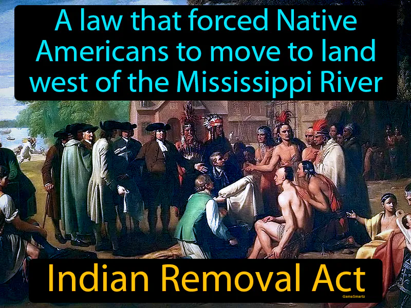 Indian Removal Act: A law that forced Native Americans to move to land west of the Mississippi River. Indian Removal Act. The Indian Removal Act was a law passed in 1830 that led to the forced relocation of Native American tribes from their ancestral lands to areas west of the Mississippi River.