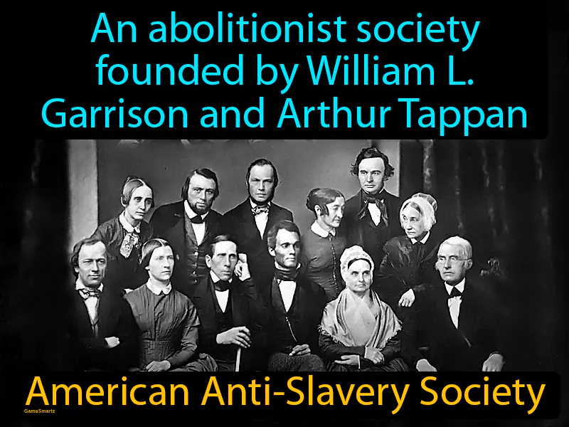 American Anti-Slavery Society: An abolitionist society founded by William L. Garrison and Arthur Tappan. American Anti-Slavery Society. It was an organization in the 19th century that worked to end slavery in the United States.