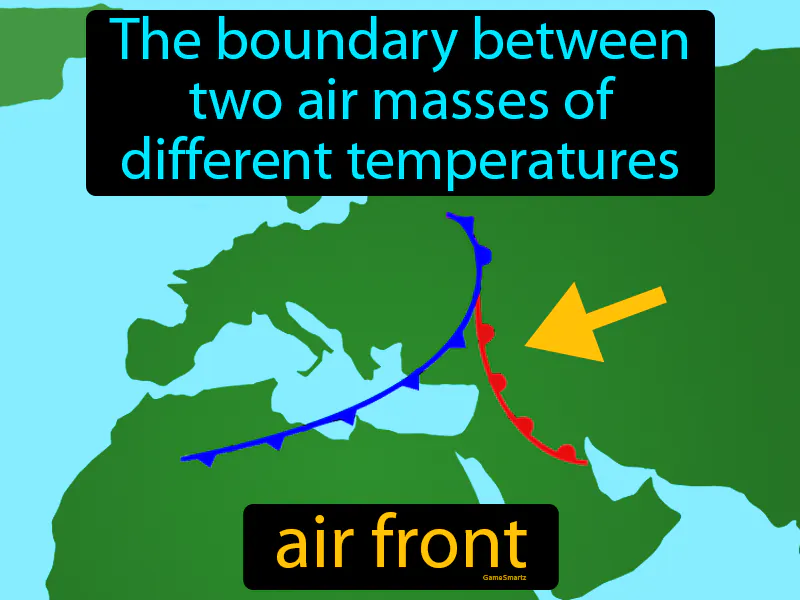 Air Front: The boundary between two air masses of different temperatures is called an air front. An air front is where two different air masses meet, often causing changes in weather.