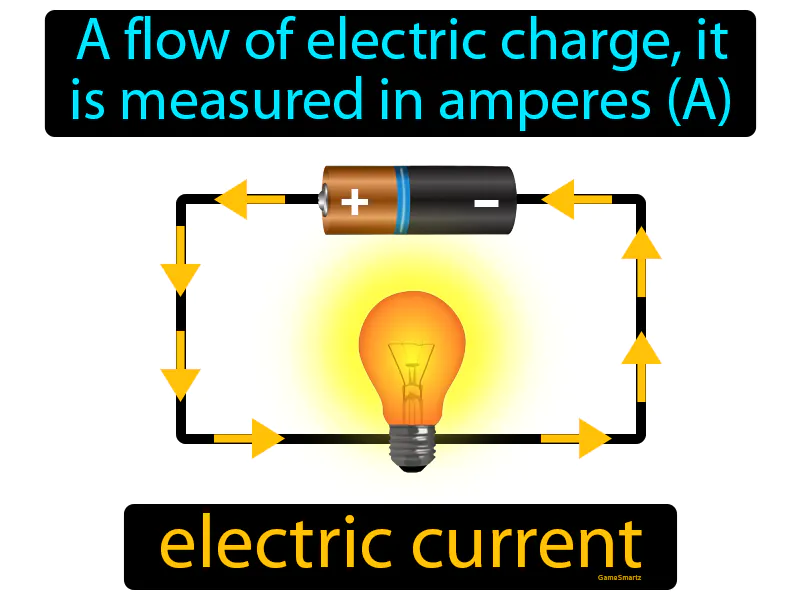 Electric Current: A flow of electric charge, it is measured in amperes A. Electric current. Electric current is the movement of electrons through a conductor, like a wire.