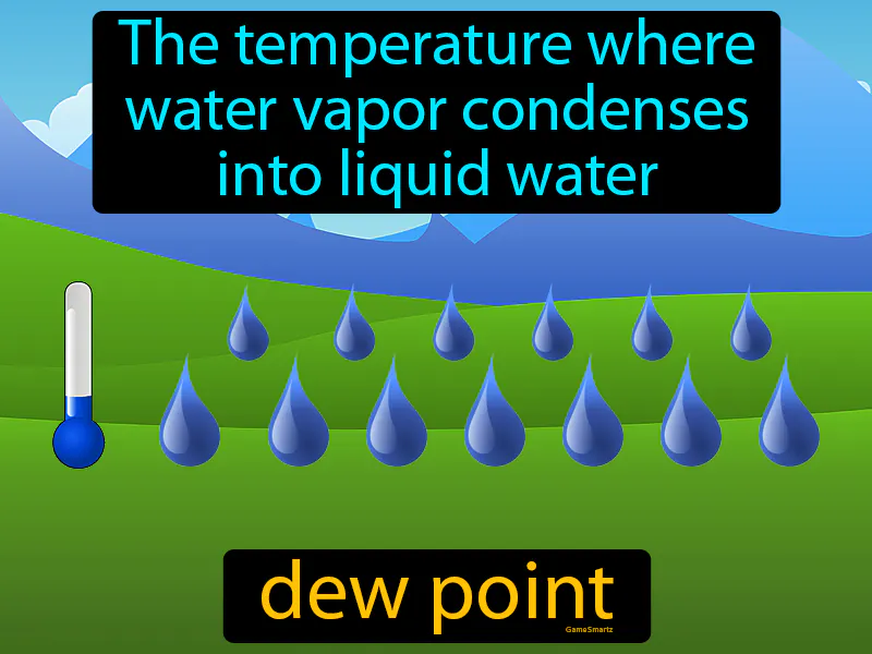 Dew Point: The temperature of air at which condensation begins. Dew point. The dew point is the temperature at which air becomes fully saturated with moisture, causing water vapor to condense into liquid droplets.