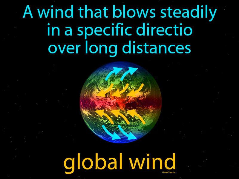 Global Wind: A wind that blows steadily in a specific direction over long distances. Global wind. Global winds are large-scale wind patterns that move across the Earth, influencing weather and climate.