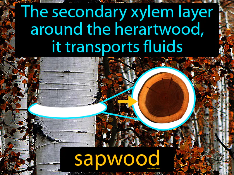 Sapwood: The secondary xylem layer around the heartwood, it transports fluids. Sapwood. Sapwood is the part of a tree that carries water and nutrients from the roots to the rest of the tree.
