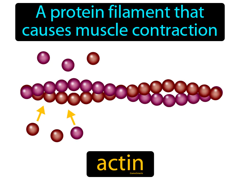 Actin: A protein filament that causes muscle contraction. Actin. Actin is a protein that helps muscles move by working with another protein called myosin.