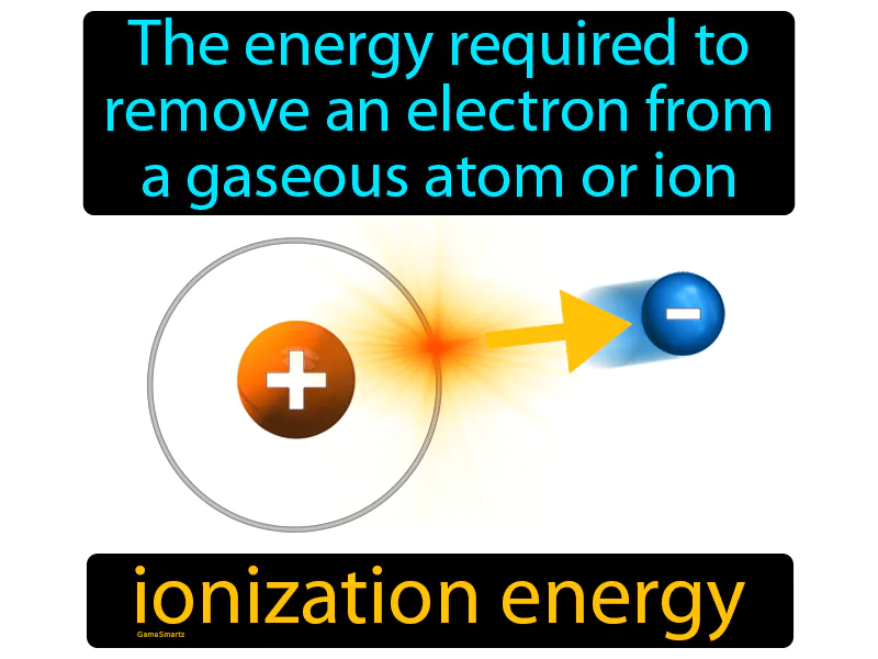 Ionization Energy: The energy required to remove an electron from a gaseous atom or ion ionization energy. Ionization energy is the amount of energy needed to take an electron away from an atom.
