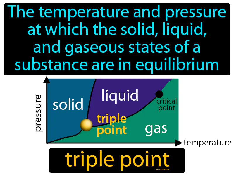 Triple Point: The temperature and pressure at which the solid, liquid, and gaseous states of a substance are in equilibrium. Triple point. The triple point is where a substance can exist in all three statessolid, liquid, and gasat the same time.
