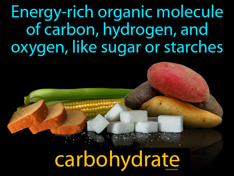 Carbohydrate: An energy-rich organic molecule of carbon, hydrogen, and oxygen, like sugar or starches. Carbohydrates are compounds that provide energy to living organisms.