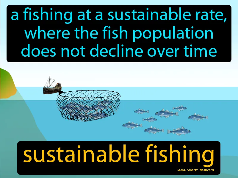 Sustainable Fishing: A fishing at a sustainable rate, where the fish population does not decline over time. Sustainable fishing. Sustainable fishing means catching fish at a rate that allows fish populations to replenish and thrive over the long term.