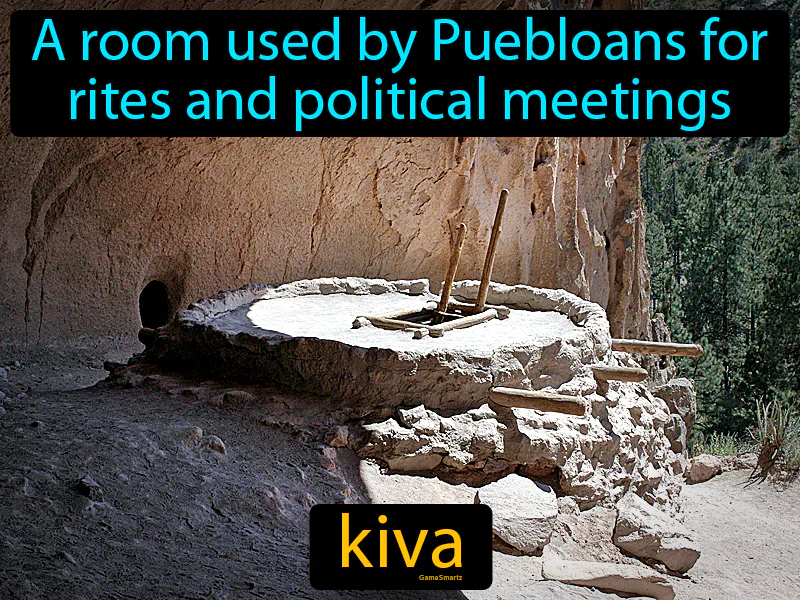 Kiva: A room used by Puebloans for rites and political meetings. Kiva. A kiva is a circular, underground room used by Native American Puebloans for religious ceremonies and gatherings.