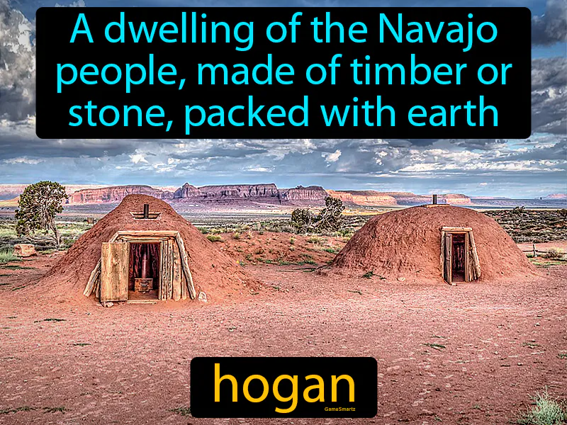 Hogan: A dwelling of the Navajo people, made of timber or stone, packed with earth. Hogan. A hogan is a traditional Native American house used by the Navajo, known for its dome shape and earthen construction.
