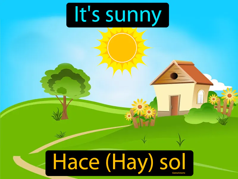 The Spanish phrase "hace hay sol" translates to "it's sunny" in English. To help you remember this, think of the famous Beatles song "Here Comes the Sun." Just like the song heralds the arrival of sunshine, "hace hay sol" announces that the sun is shining bright. Imagine the sun as a superstar making its grand entrance on stage, and you can almost hear the words "here comes the sun" echoing in your mind. ☀️
