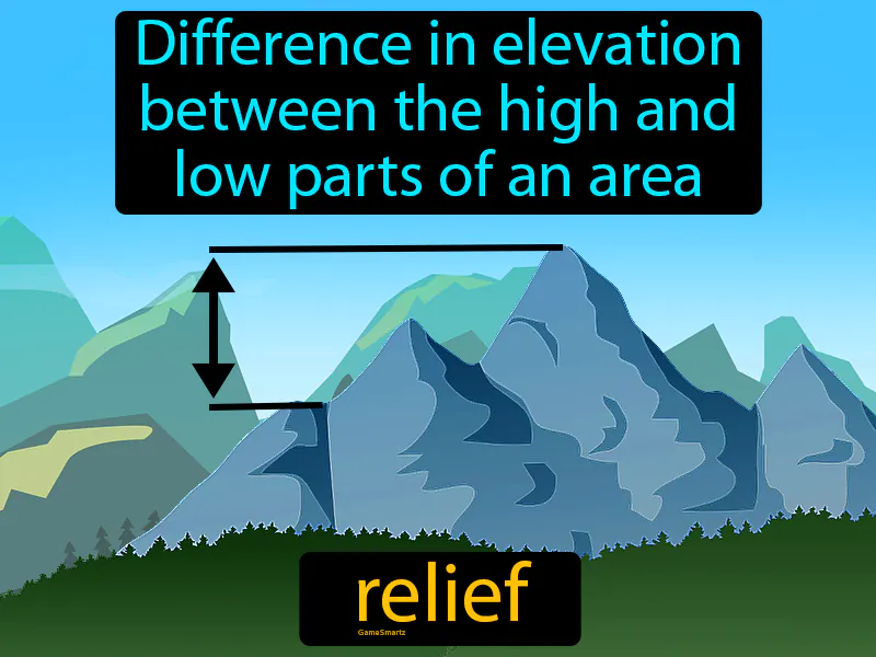 Relief: Difference in elevation between the high and low parts of an area. Relief. In Science, relief refers to the variations in height and slope of the Earth's surface.