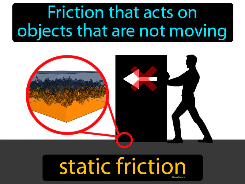 Static Friction: Friction that acts on objects that are not moving. Static friction. Static friction is the force that keeps an object at rest and prevents it from moving against a surface.