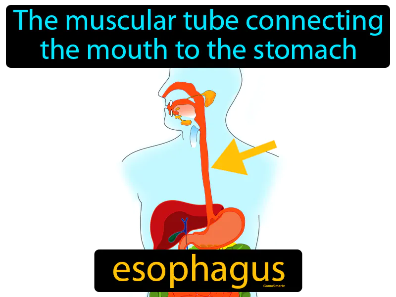 Esophagus: The muscular tube connecting the mouth to the stomach. Esophagus. The esophagus is a tube that carries food and liquid from your throat to your stomach.