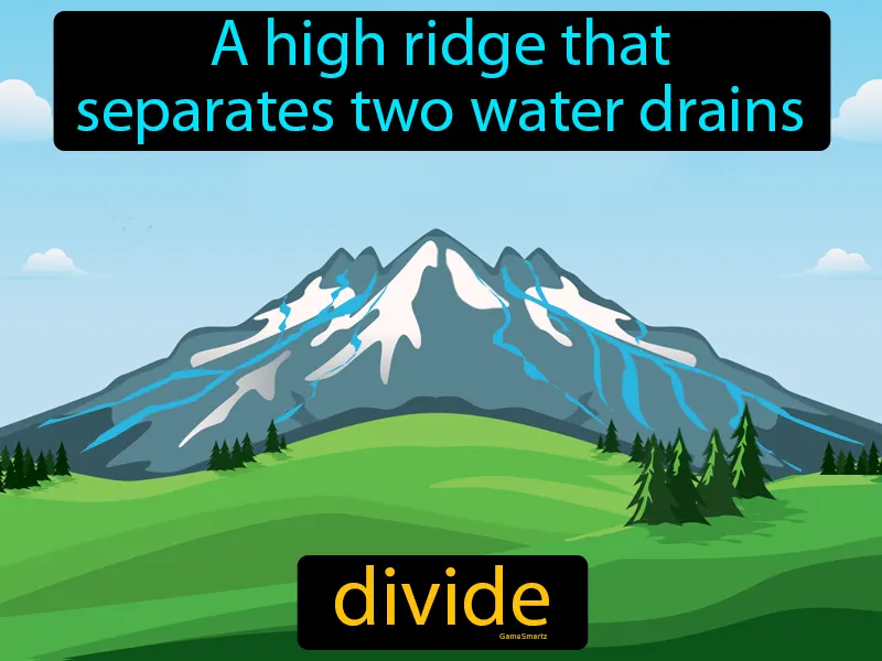 Drainage Divide: A high ridge that separates two water drains. Drainage divide. A drainage divide is a boundary, often a ridge, that directs water flow into different drainage systems.