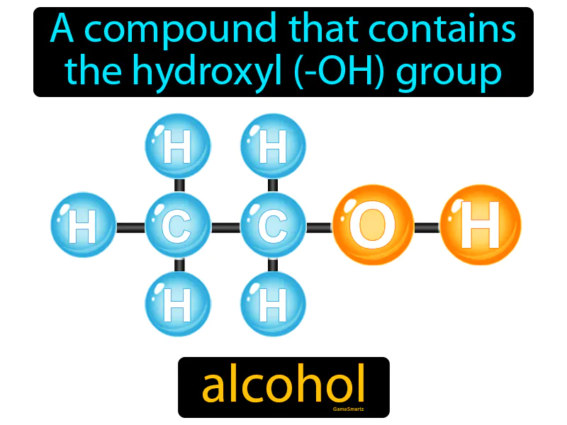 Alcohol: A compound that contains the hydroxyl -OH group is an alcohol. Alcohol is a substance made from fermented sugars that can be used as a fuel, solvent, or drink.