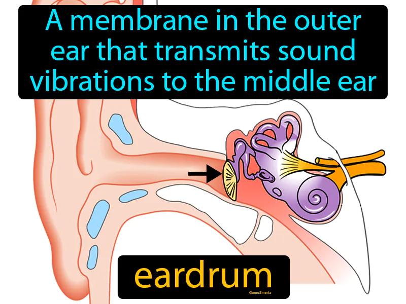 Eardrum: A membrane in the outer ear that transmits sound vibrations to the middle ear. Eardrum. The eardrum is a thin layer that vibrates when sound waves hit it, helping us hear.