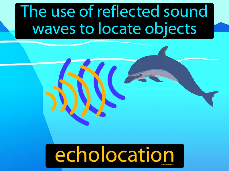 Echolocation: The use of reflected sound waves to locate objects. Echolocation. It is a process where animals find objects by making sounds and listening to the echoes that bounce back.
