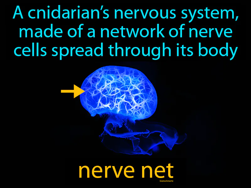 Nerve Net: A cnidarians nervous system, made of a network of nerve cells spread through its body. Nerve net. A nerve net is a simple system with interconnected nerve cells that allow cnidarians to respond to their environment without a central brain.