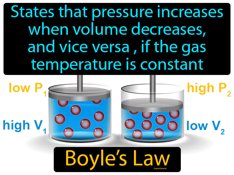 Boyles Law: States that pressure increases when volume decreases, and vice versa, if the gas temperature is constant. Boyle's Law It describes how gas pressure and volume are inversely related at constant temperature.