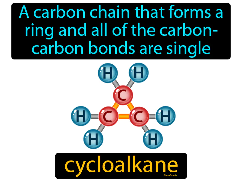 Cycloalkane: A carbon chain that forms a ring and all of the carbon-carbon bonds are single. Cycloalkane. Cycloalkanes are ring-shaped molecules made only of carbon and hydrogen with single bonds.