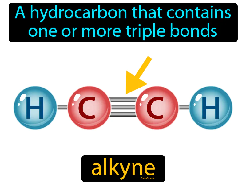 Alkyne: A hydrocarbon that contains one or more triple bonds. Alkyne. Alkynes are a type of hydrocarbon with carbon atoms connected by triple bonds, giving them unique chemical properties.