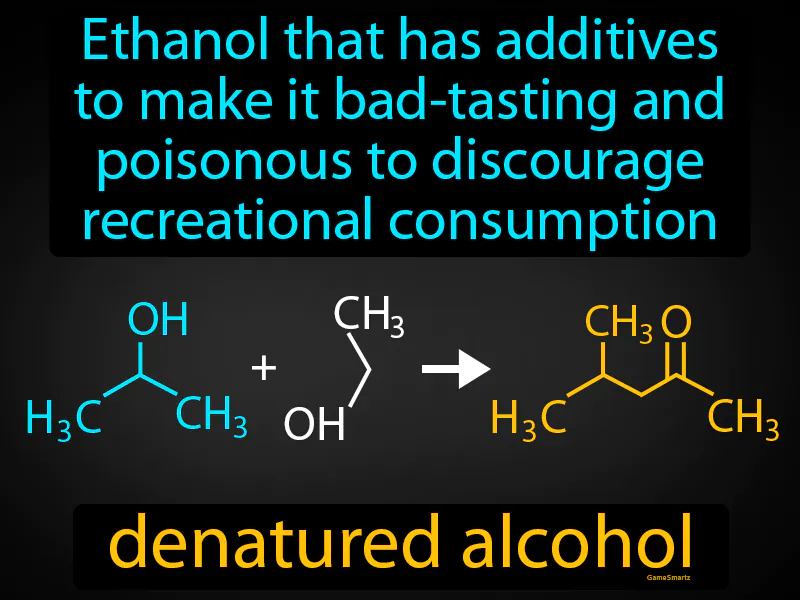 Denatured Alcohol: Ethanol that has additives to make it bad-tasting and poisonous to discourage recreational consumption. Denatured alcohol. It is ethanol that has been chemically altered to prevent people from drinking it.