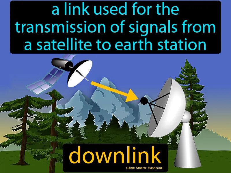 Downlink: A link used for the transmission of signals from a satellite to earth station. Downlink. It's the process of sending data from a satellite back down to a receiving device on Earth.